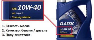 | Класс вязкости смазки по системе SAE | 15W-40 | 10W-30 | 10W-40 | 5W-30 | 5W-40 | 20W-40 | 0W-30 | 0W-40 |