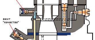 To adjust the optimal mixture parameter, the carburetor has screws for the quantity and quality of fuel. You can also change the position of the needle in the lock by raising or lowering it (change the quality of the mixture). This is usually done when the season changes, when atmospheric air parameters change sharply.