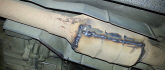 - Катализатор. Исправная деталь не сильно отражается на экономичности. Но со временем соты катализатора забиваются и затрудняют прохождение выхлопных газов. Это снижает КПД двигателя и даже может привести к проблемам с его запуском. Решить проблему можно двумя способами: правильным — заменить деталь, бюджетным и неэкологичным — вырезать катализатор и вварить на его место кусок трубы.